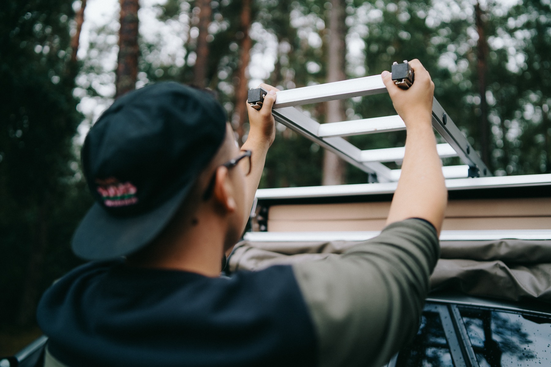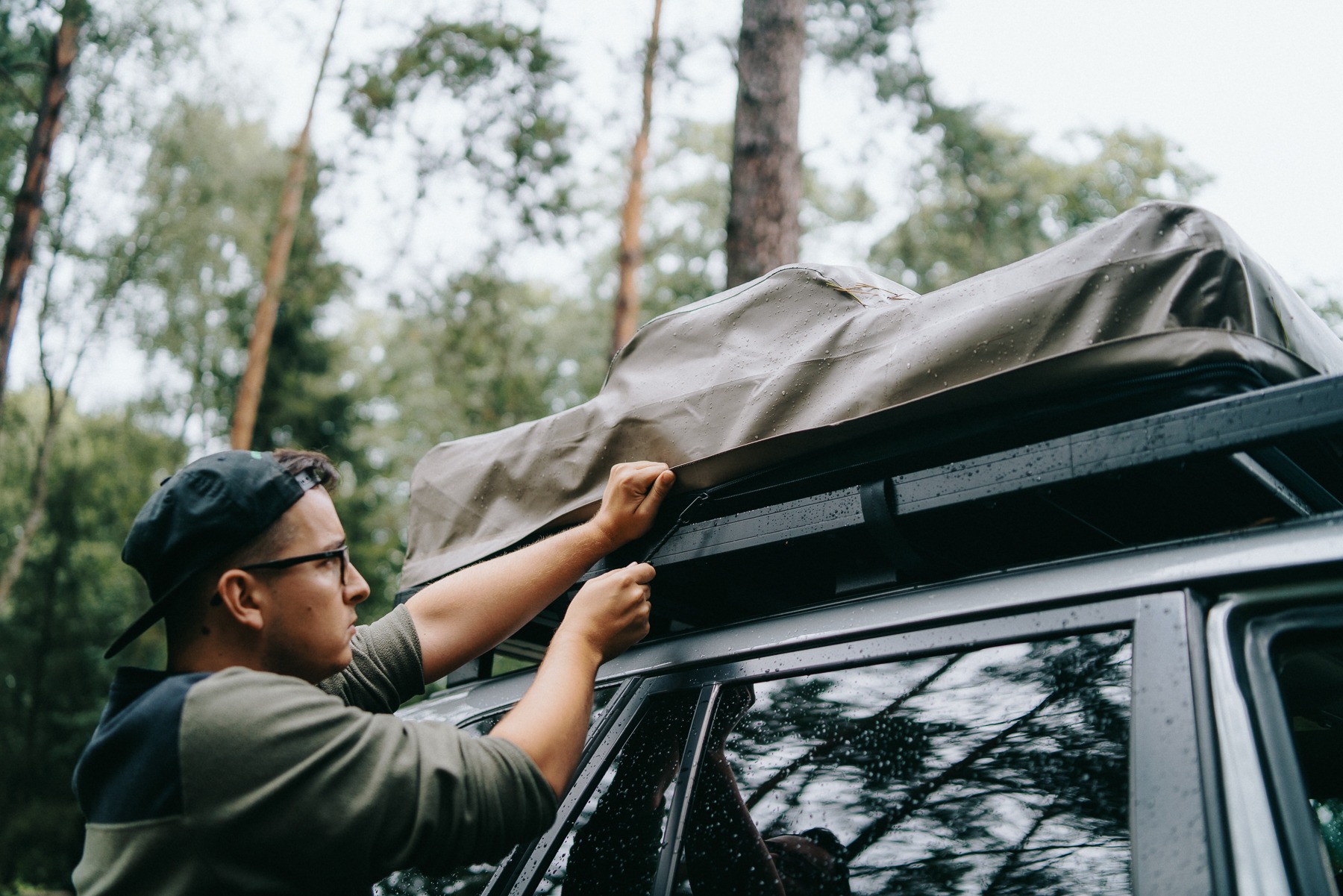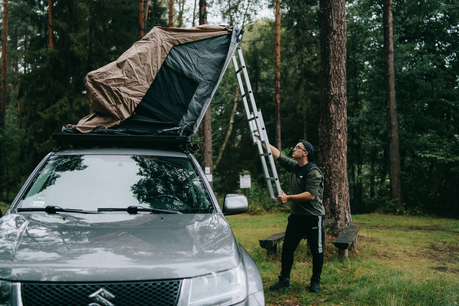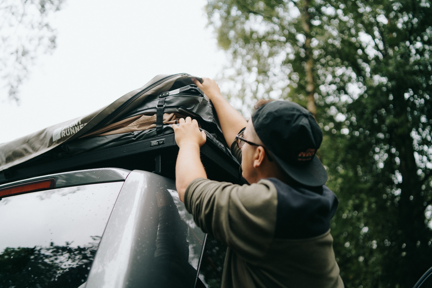 The unfolded Front Runner Outfitters Feather-Lite roof tent measures 1.30 meters wide and 2.40 meters long. Moreover, it holds the title of the flattest roof tent available and weighs just 43 kg. Consequently, this makes it an excellent choice for vehicles with lower roof ratings and limited space. Additionally, its sleek profile reduces air resistance during drives. Furthermore, the tent comfortably fits two adults and unfolds effortlessly in one smooth motion, quickly creating a bedroom wherever we are.